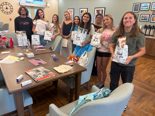On November 11,2026, Veterans Day the Grossmont High School Interact Students made gift bags for the Veterans at Westmont Senior Living in La Mesa. The bags contained 12 different personal care items and reading materials.