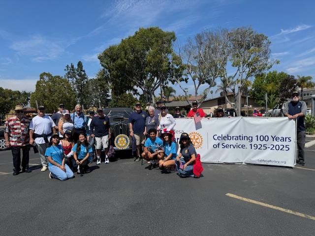 On July 14 our La Mesa Rotary Club, and other La Mesa Service organizations were the Grand Marshall Club President for 2025-2026s of the La Mesa Flag Day Parade. We were honored as this is our 100th year anniversary. Bonnie Welch is our Club President for 2025-2026. We had many Club members walking and some in special cars. The Grossmont High School Interact students walked and carried our large La Mesa Rotary banners.